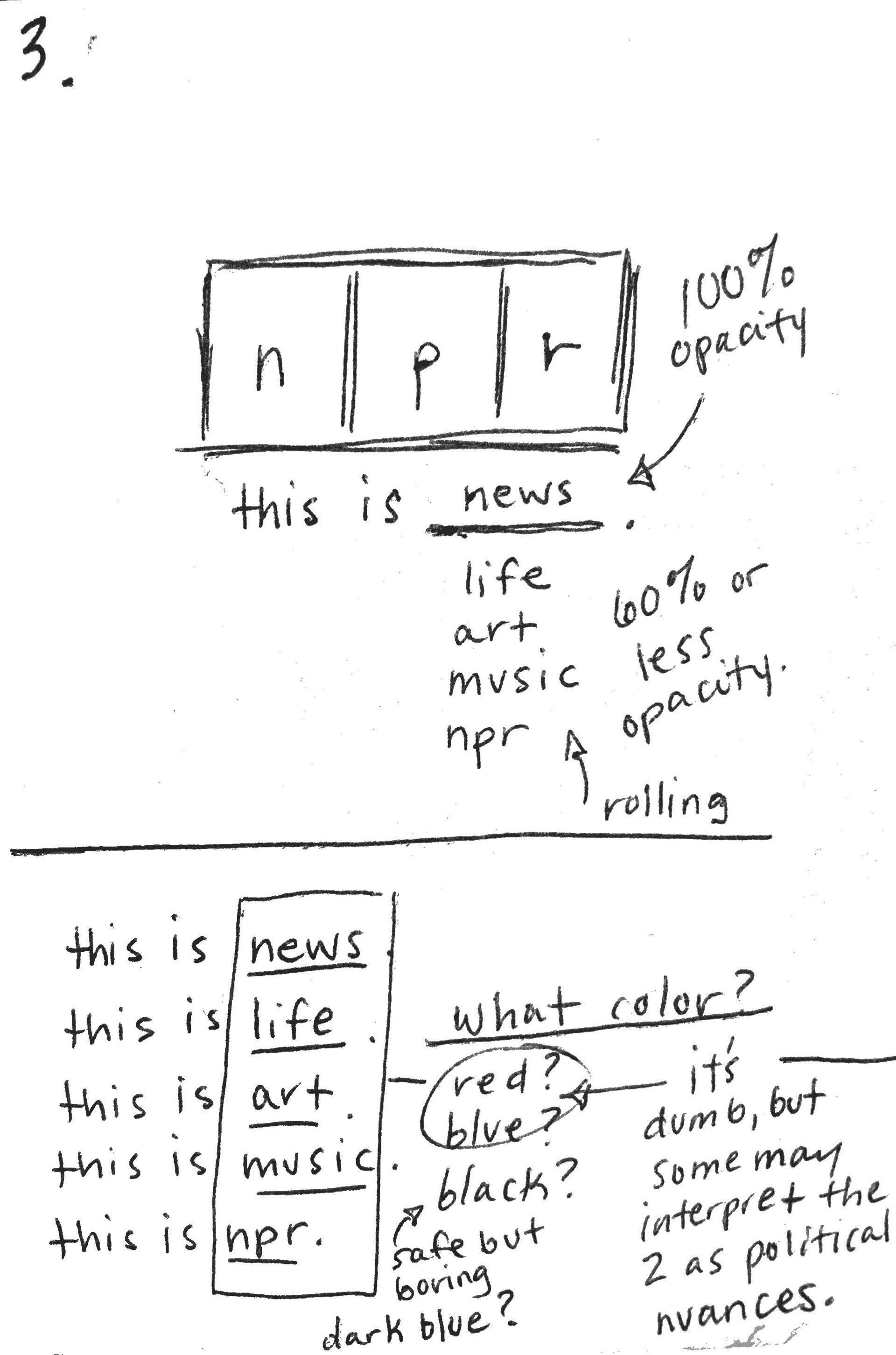 I first developed the shapes through sketches and finalized them through Photoshop and Illustrator. The different shapes and colors is intended to match the vibrant and distinct quality of NPR's creative side.